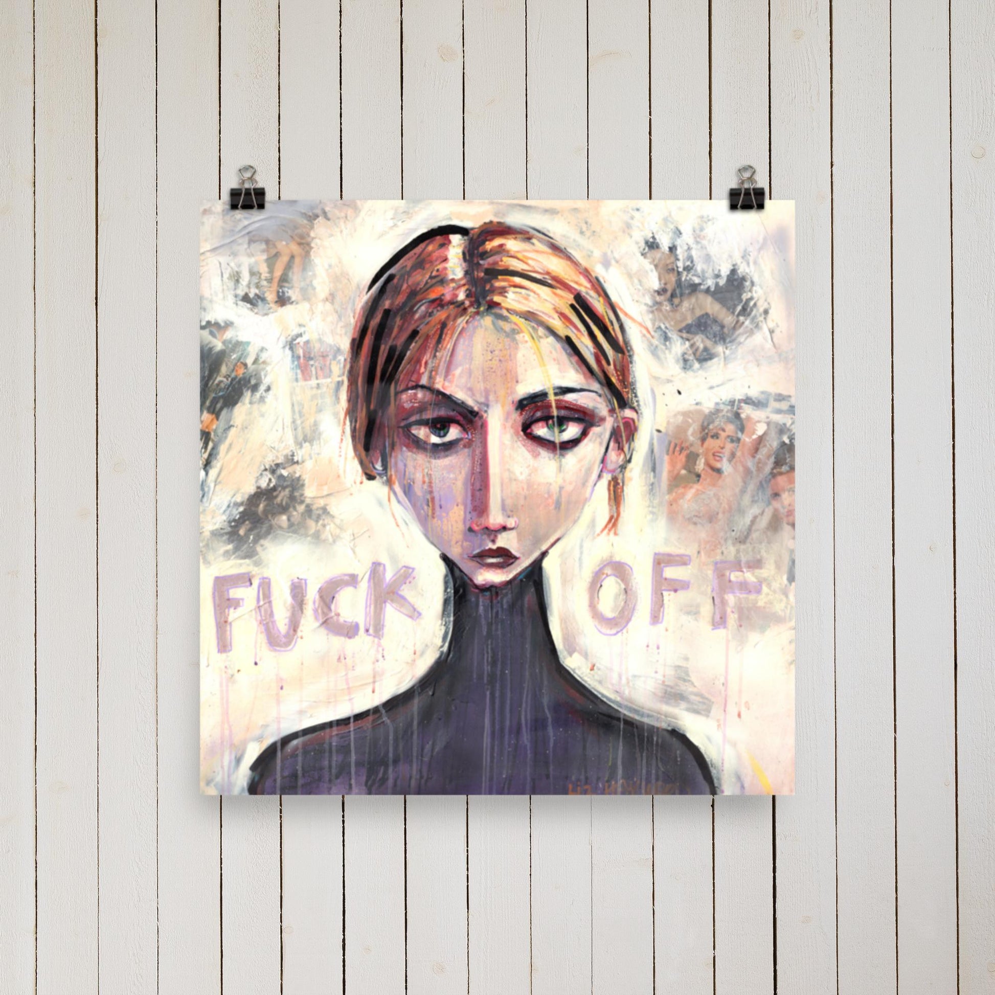 Make a bold statement with the 'F*CK OFF' 12 x 12 print by Liz Haywood. This assertive piece from Haywood’s collection captures a fierce, unapologetic attitude that resonates with those who refuse to tolerate disrespect and injustice. The artwork’s direct, powerful message is rendered in Haywood’s signature style, combining vibrant colors and bold text to create a striking visual impact.