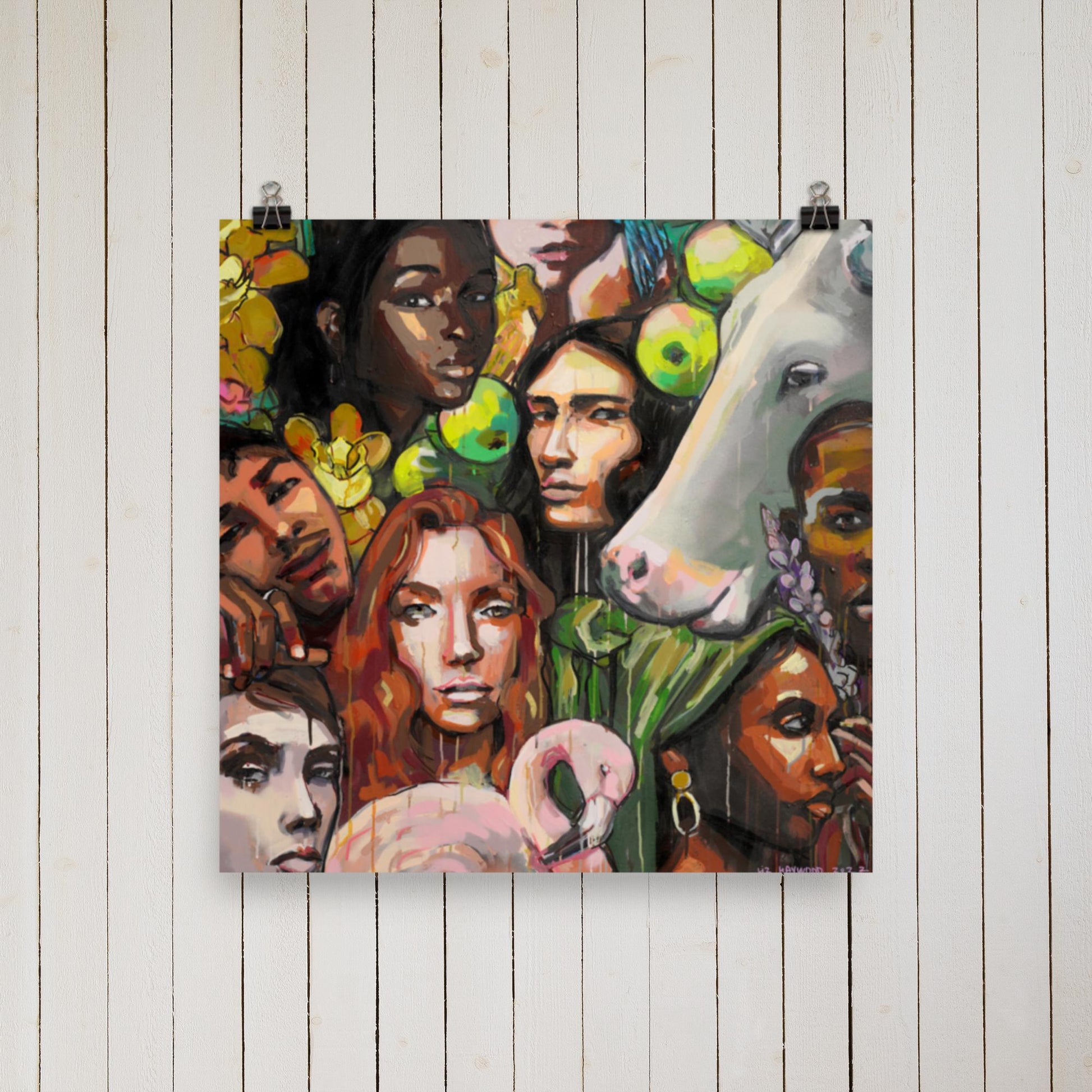 Liz Haywood is an award-winning artist + muralist known for her bold, colorful works that blend street art with fine art. Her dynamic use of textures, acrylic pen, latex, and spray paint brings every piece to life, offering a unique expression that captivates collectors. Liz’s prints are designed to uplift spaces, combining vibrant visuals with powerful themes of feminism and social commentary. Shop now to bring one of Liz’s striking artworks into your home and support original art.