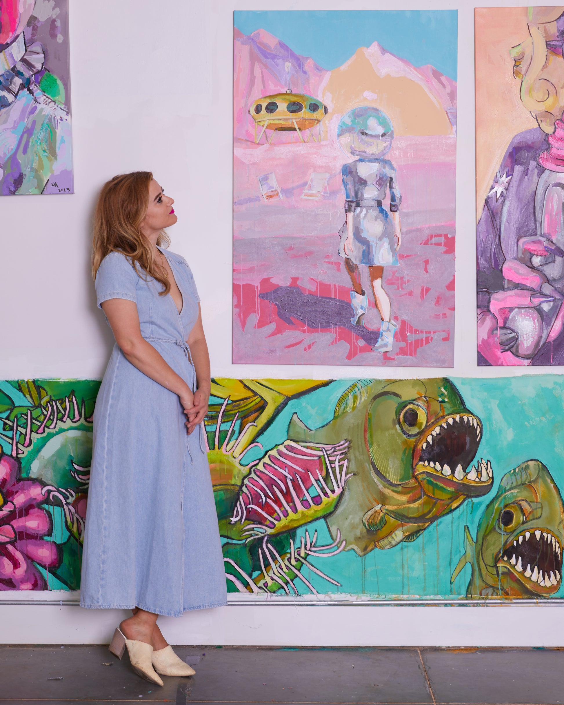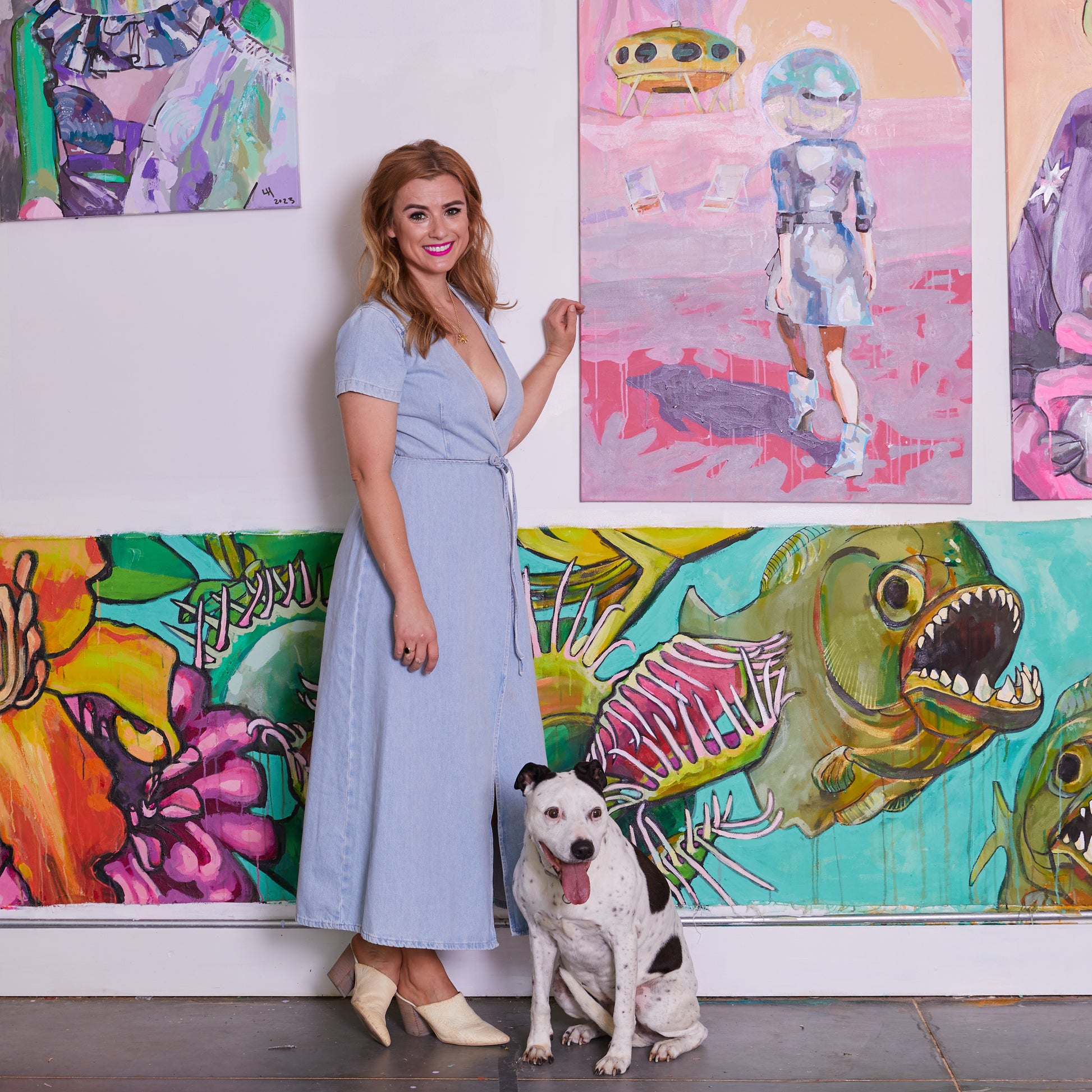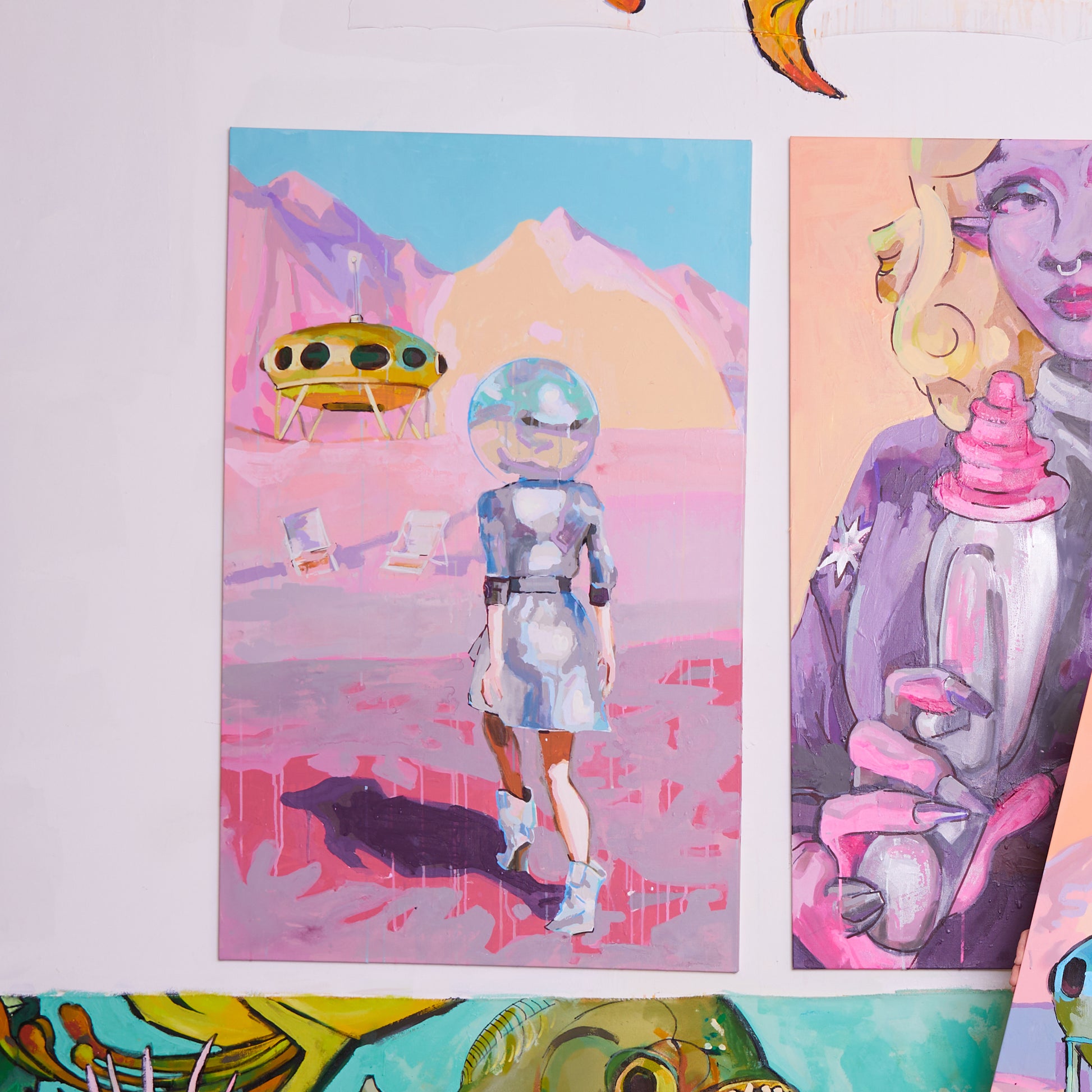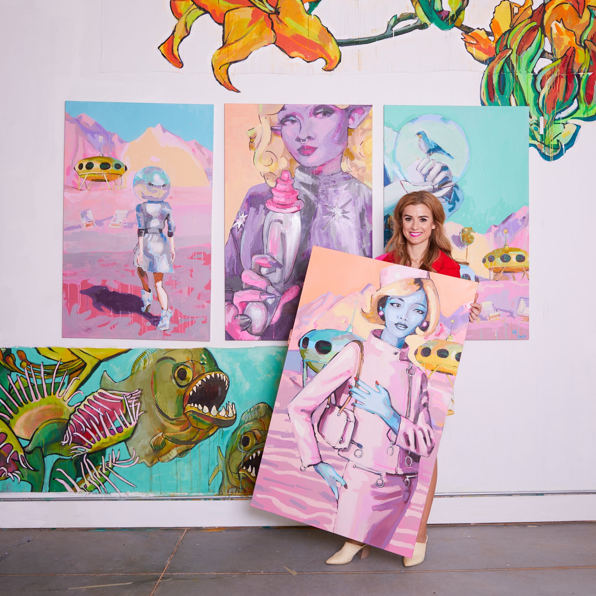Vibrant colors permeate the art of Charlotte native Liz Haywood. Liz graduated from Appalachian State University and then attended the Portfolio Center in Atlanta. She completed her studies winning several student awards. Liz was attracted to the professional challenge of working in New York. She worked primarily as a graphic artist in Manhattan for seven years. After attaining the position as head of graphic design for the popular shoe brand, Dolce Vita, she focused on establishing herself as an independent artist. Returning to the south, she developed a steady demand for her art through social media and local showings. In Atlanta, she painted several murals in public spaces to voice her social concerns. After relocating to Charlotte, Liz created a body of work for festivals and arts shows, including Bethesda Art Row and The Festival in The Park. She was awarded an Honorable Mention by SouthEnd Arts and the Brooklyn Collective in 2021. That year Liz was also accepted into a mural residency program by Brand the Moth, where she completed her capstone mural at Lenny Boy Brewing Company. Liz’s work is now being displayed nationwide after being juried into the ArtPop class of 2022.