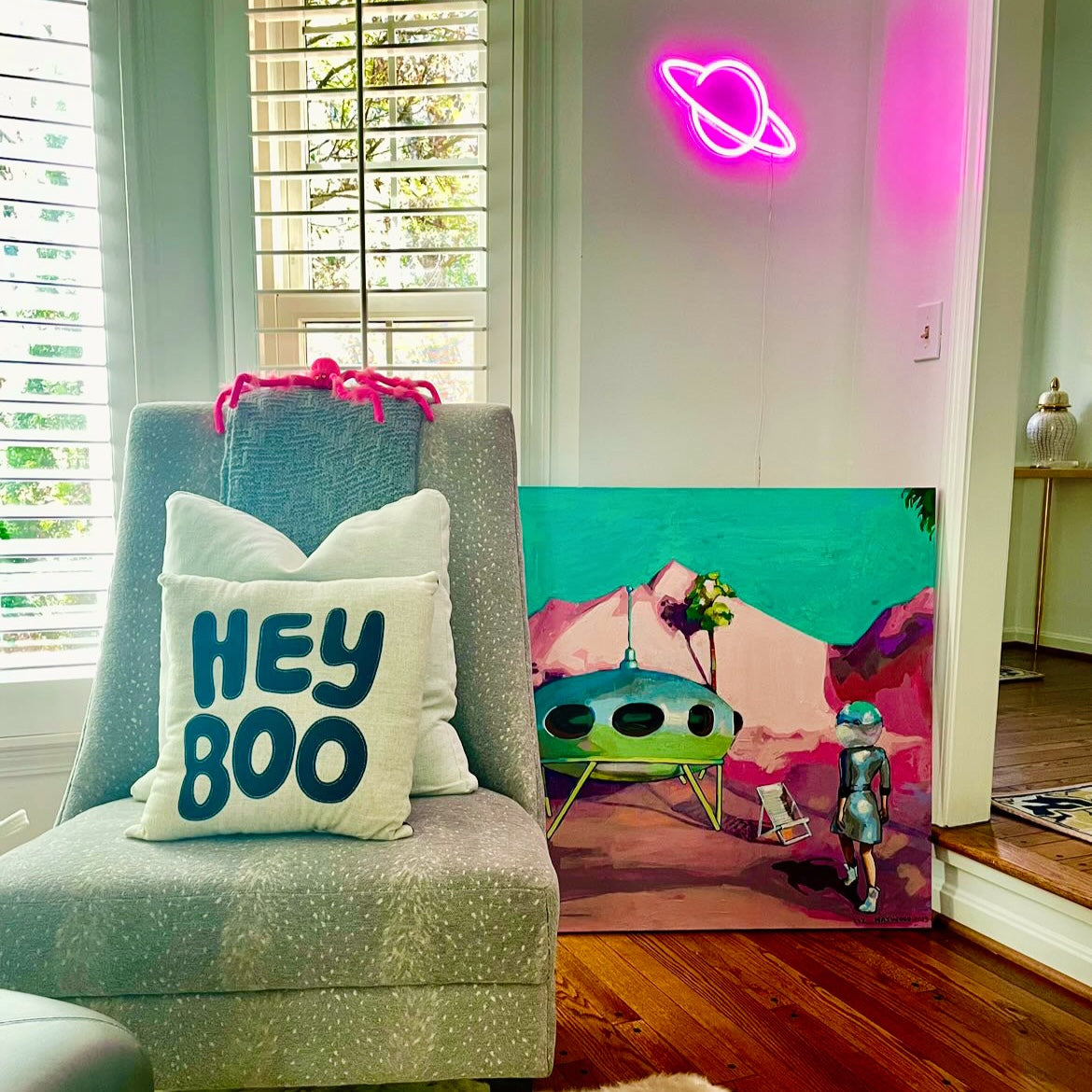 Vibrant colors permeate the art of Charlotte native Liz Haywood. Liz graduated from Appalachian State University and then attended the Portfolio Center in Atlanta. She completed her studies winning several student awards. Liz was attracted to the professional challenge of working in New York. She worked primarily as a graphic artist in Manhattan for seven years. After attaining the position as head of graphic design for the popular shoe brand, Dolce Vita, she focused on establishing herself as an independent artist. Returning to the south, she developed a steady demand for her art through social media and local showings. In Atlanta, she painted several murals in public spaces to voice her social concerns. After relocating to Charlotte, Liz created a body of work for festivals and arts shows, including Bethesda Art Row and The Festival in The Park. She was awarded an Honorable Mention by SouthEnd Arts and the Brooklyn Collective in 2021. That year Liz was also accepted into a mural residency program by Brand the Moth, where she completed her capstone mural at Lenny Boy Brewing Company. Liz’s work is now being displayed nationwide after being juried into the ArtPop class of 2022.