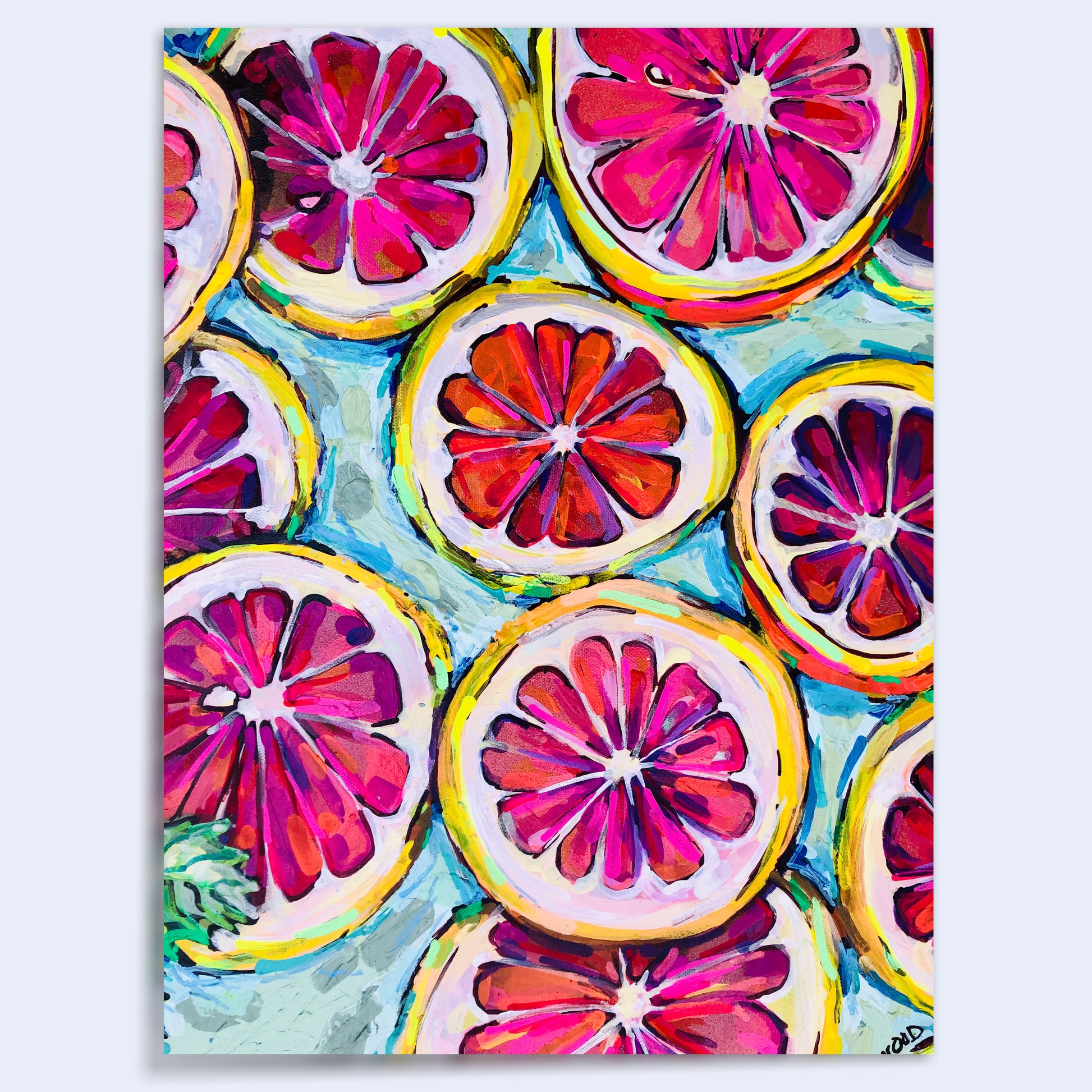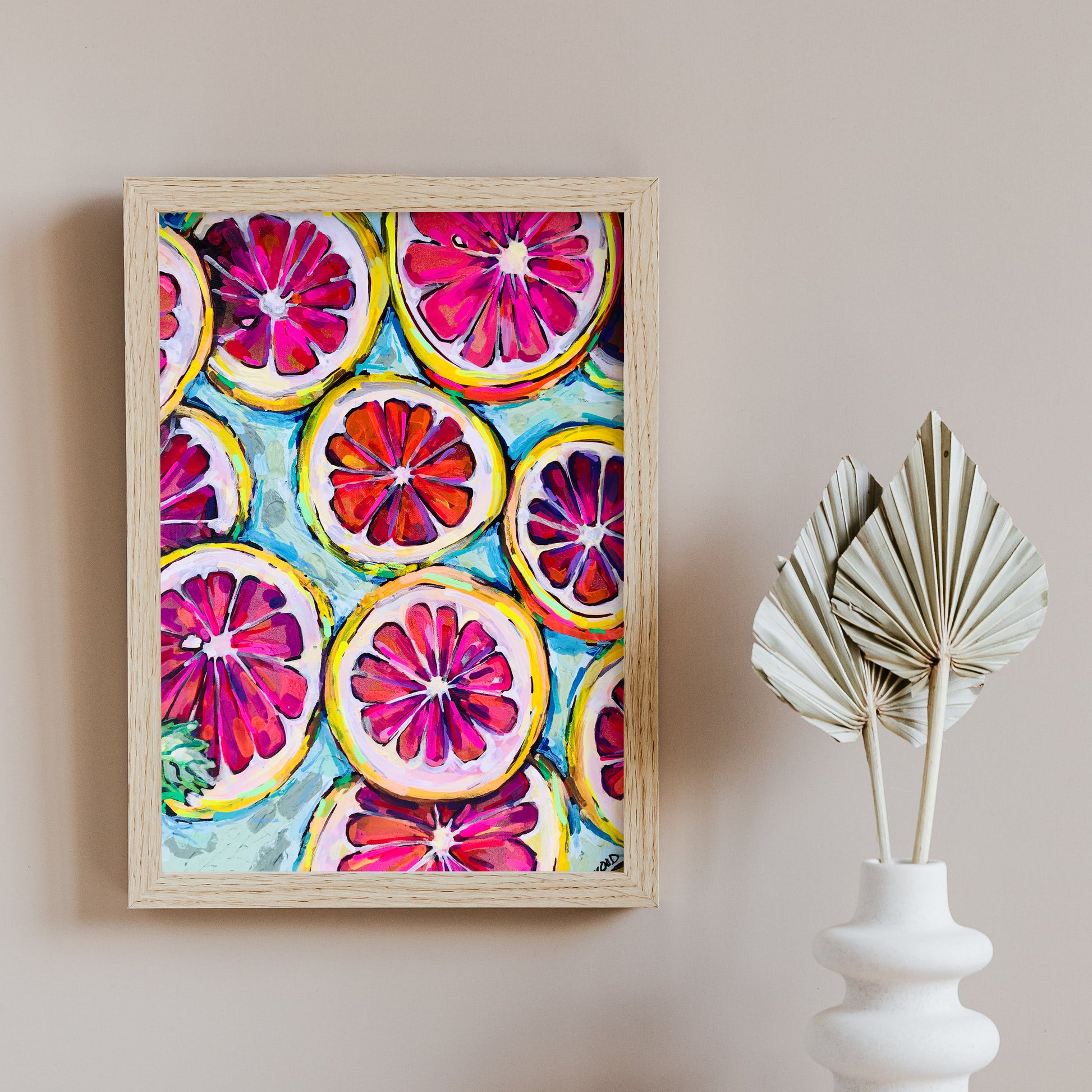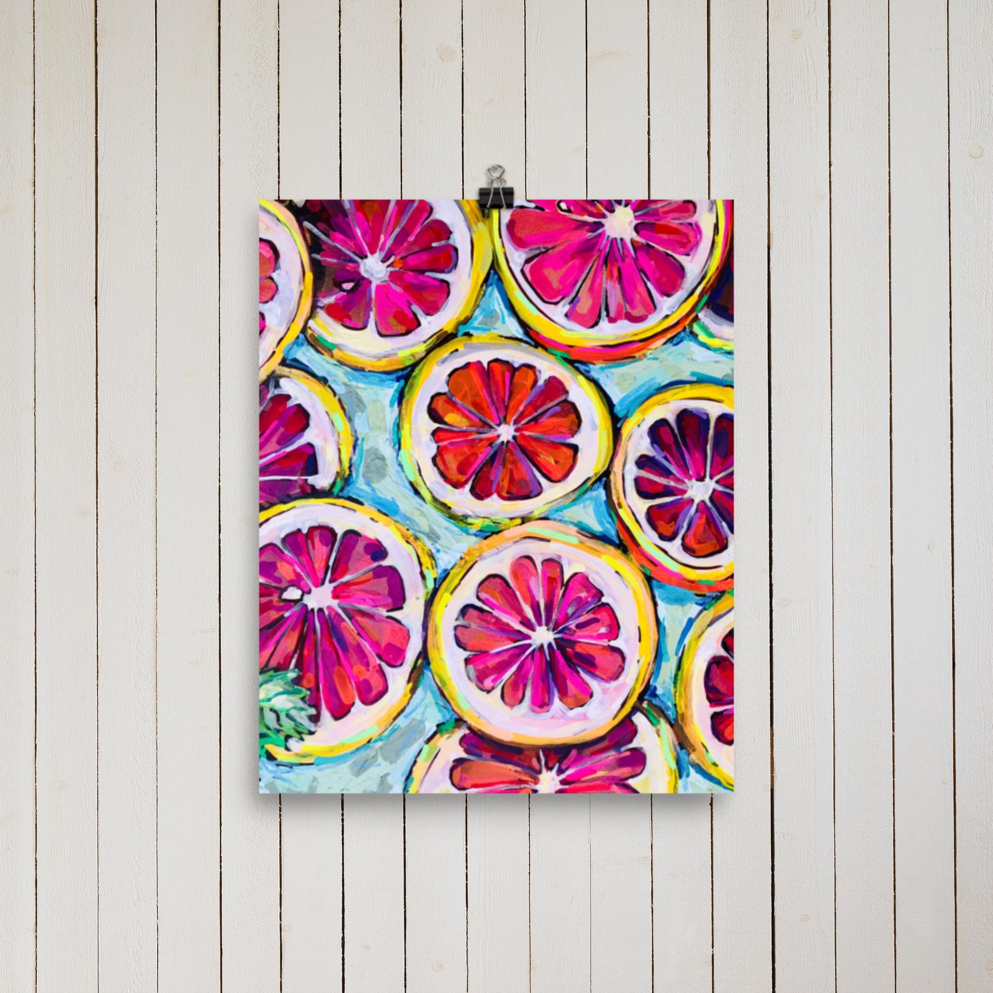 Hanging a print of juicy 8 x 10 fruit painted by Liz Haywood is a great way to bring an energetic piece of art into any room. The bright and colorful nature of the painting will instantly brighten the space, providing a vibrant and joyful atmosphere.