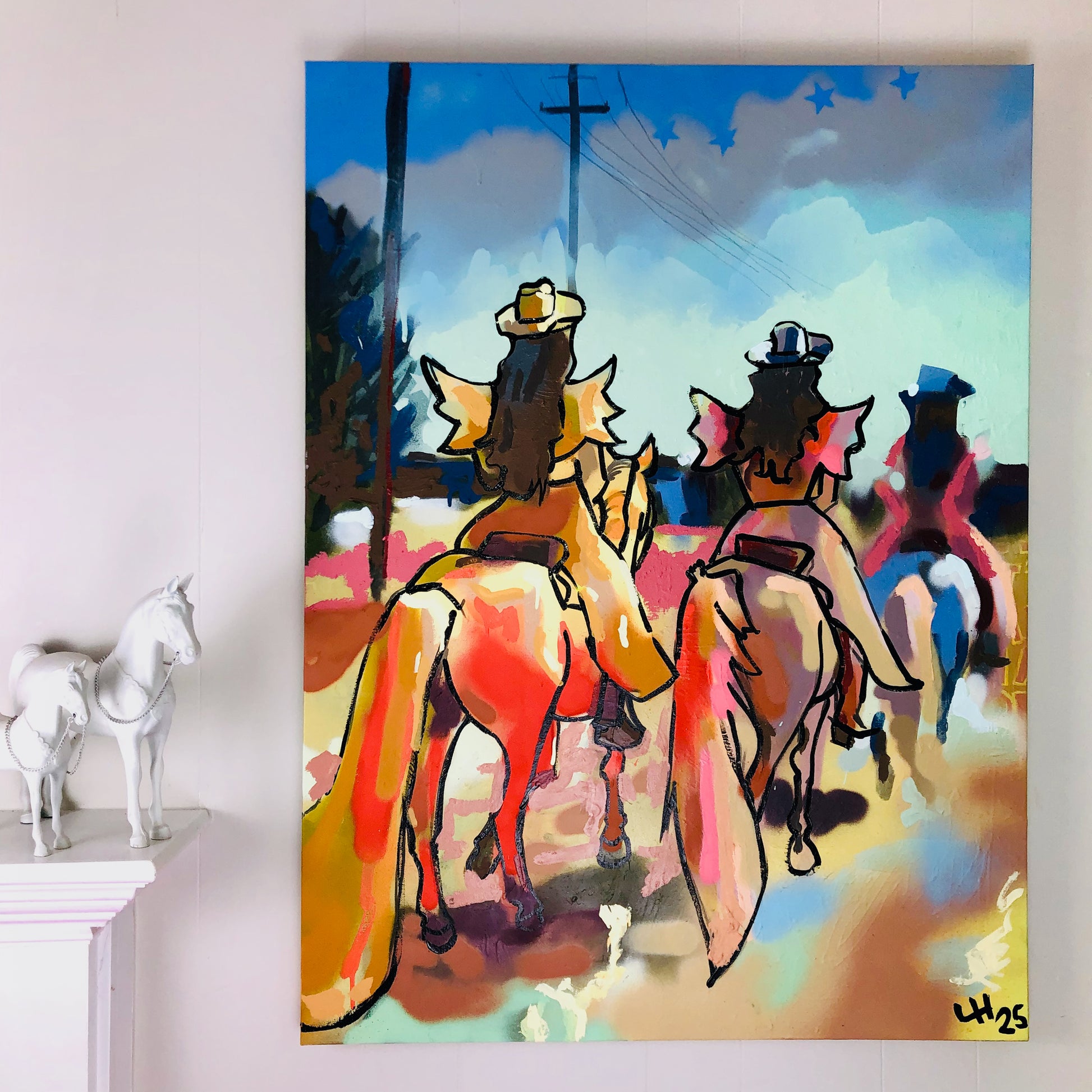 At 30 x 40 inches, Cowgirls is more than a painting—it’s a wall of motion and power, a celebration of resilience and rebellion, painted in Liz Haywood’s unmistakably bold style.