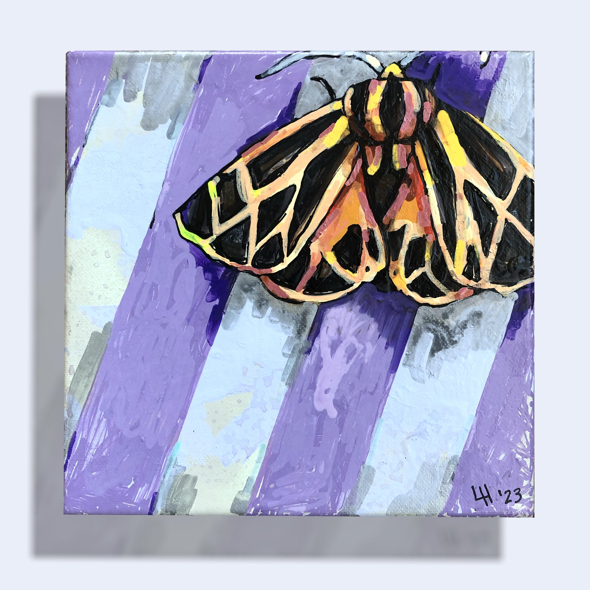 This 8 x 8 inch square painting of your new lil moth best buddy is by artist Liz Haywood.