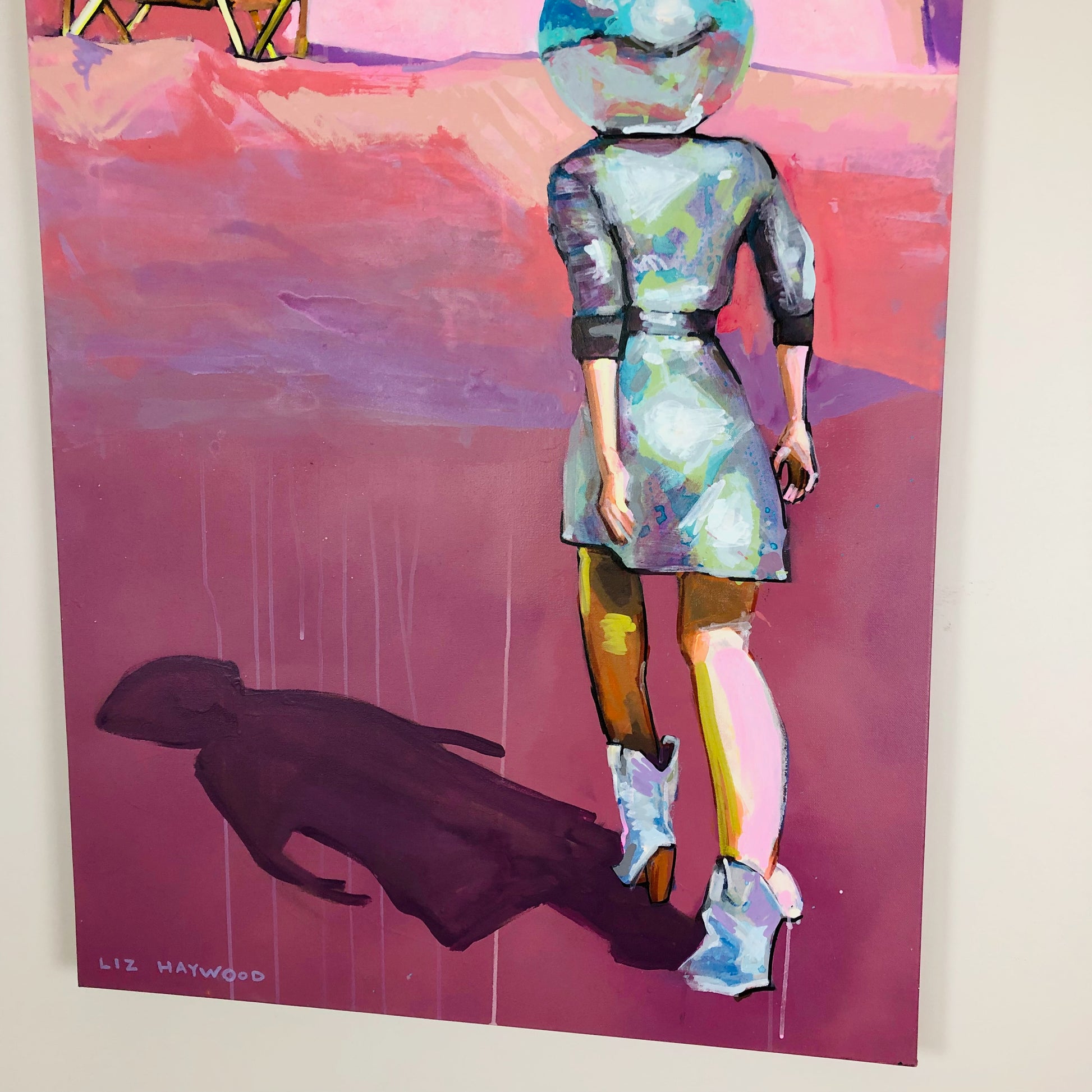 Why Buy This Artwork? Long Walk Home combines the allure of space exploration with feminist undertones, making it a standout piece in Liz Haywood’s collection. The bold colors and imaginative narrative transport viewers to a world beyond our own, sparking curiosity and contemplation. Whether you're looking to add depth to your collection or searching for a striking centerpiece, this artwork will add both beauty and thought-provoking intrigue to any space.
