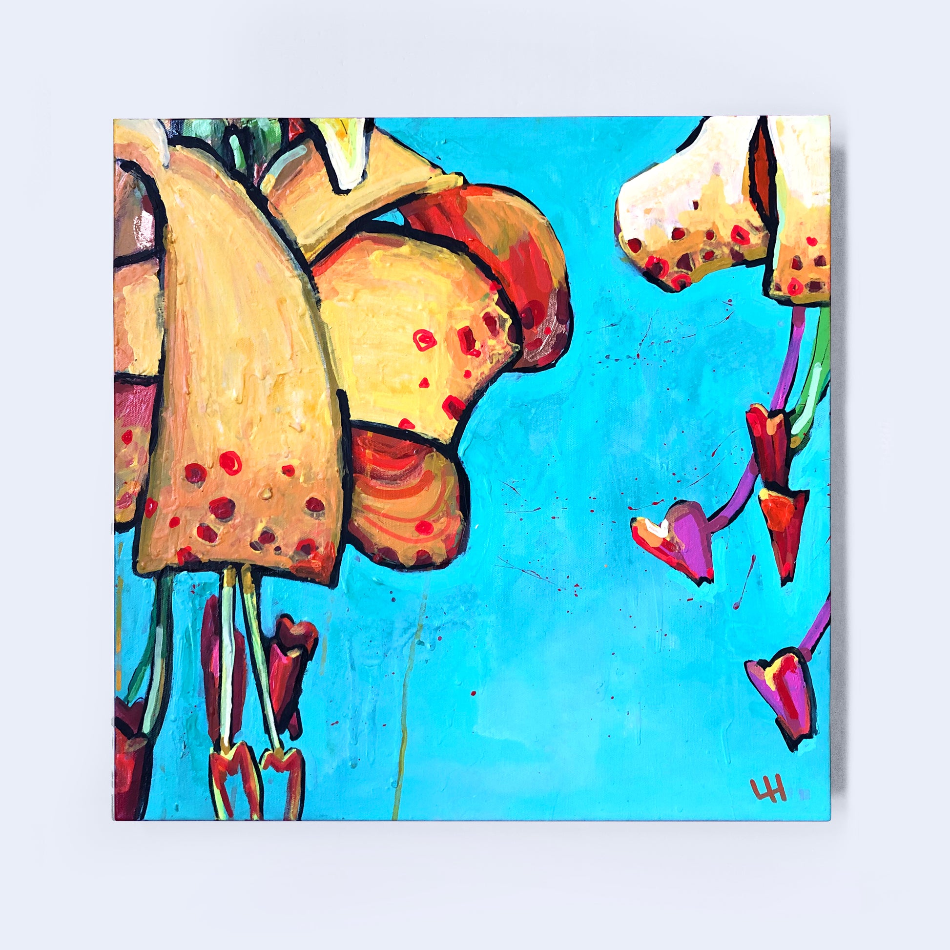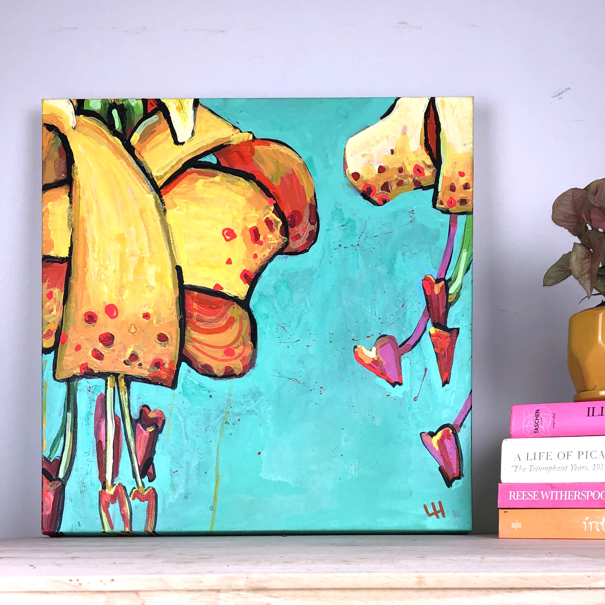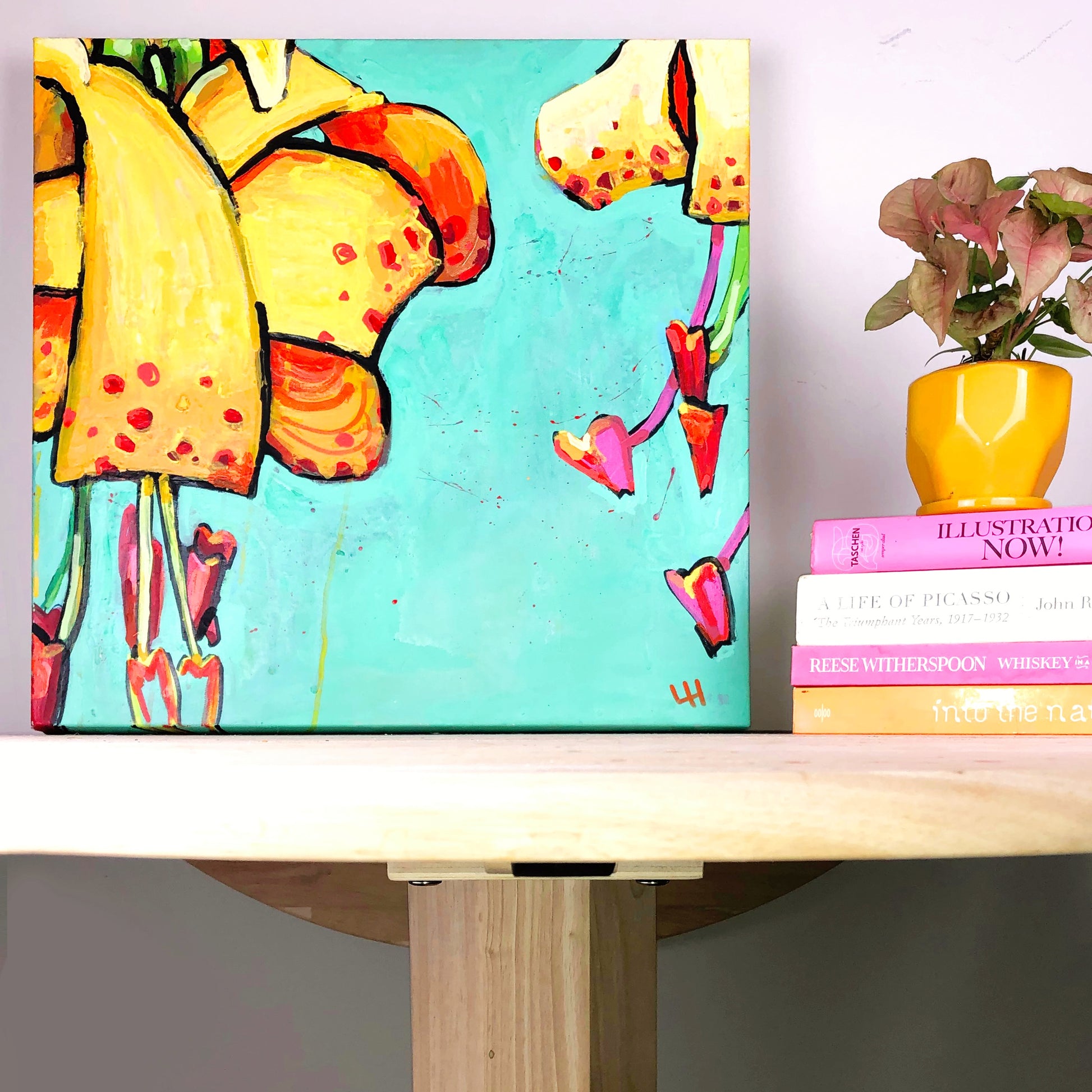 Polka Dot Flowers is a vibrant 20” x 20” canvas painting by Liz Haywood that brings a playful burst of color to any room. Featuring large, bold flowers adorned with charming polka dots, this piece combines vibrant yellows and oranges against a soft, turquoise background. The joyful composition and energetic color palette make this artwork a lively and uplifting addition to your home or office.