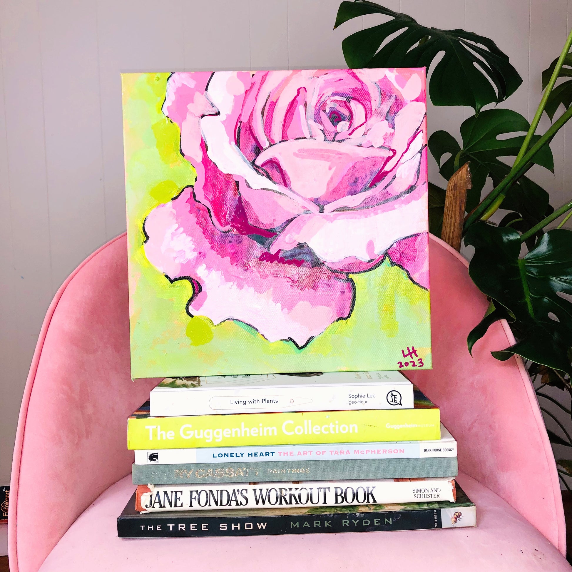 Rose is a bold and vibrant 12” x 12” canvas painting by Liz Haywood, designed to bring a modern twist to any room. Featuring lush layers of spray paint, acrylic pen, latex, and gouache, this artwork captures rich texture and depth, making it the perfect statement piece for contemporary interiors. The striking pink hues pop against the subtle background, creating an eye-catching centerpiece that breathes life into any space. Whether displayed in a home office, living room, or bedroom, this painting adds personality and flair to your decor.