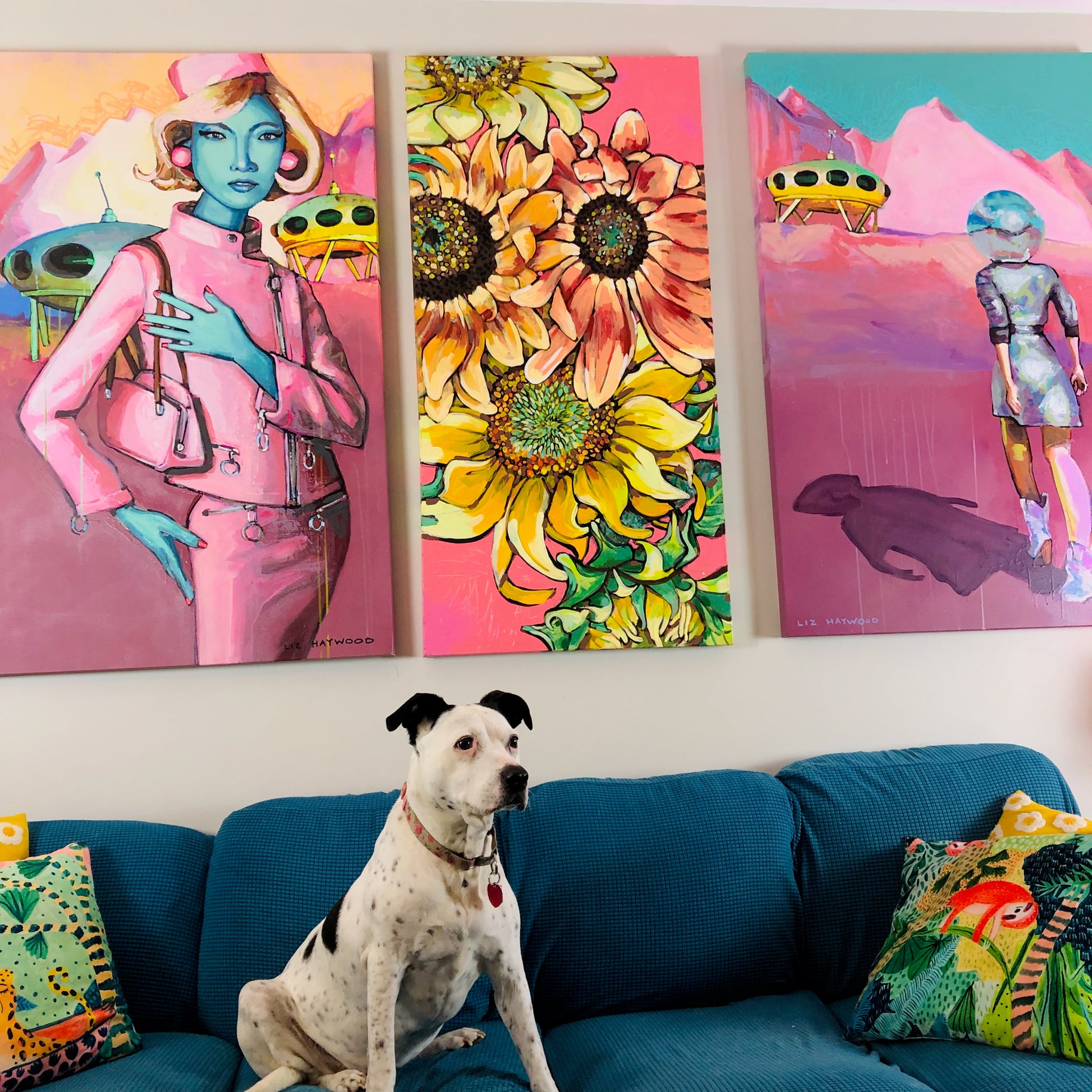 Liz Haywood, a graphic designer turned independent artist, holds degrees from Appalachian State University in North Carolina and the Portfolio Center in Atlanta, Georgia. After leading the graphic design team for Dolce Vita in Manhattan, Liz returned to the South, becoming known for her vibrant murals and social justice themes. You may recognize her work across the Southeast, where she has exhibited at major art festivals and painted many mural projects. A 2022 ArtPop Street Gallery juried artist, her art is now displayed nationwide. Liz’s signature style combines bold color, dynamic textures, and powerful feminist themes to inspire and uplift viewers.
