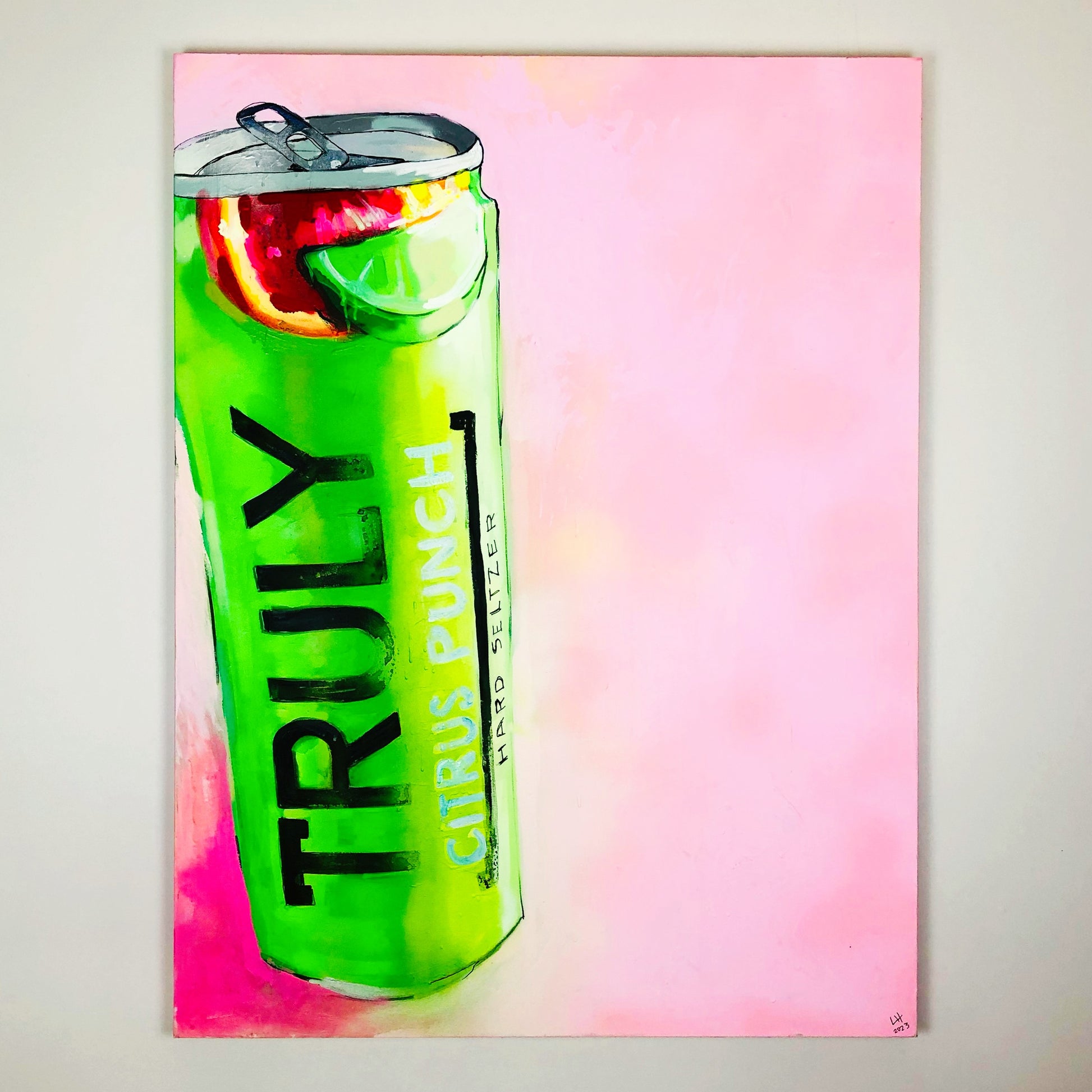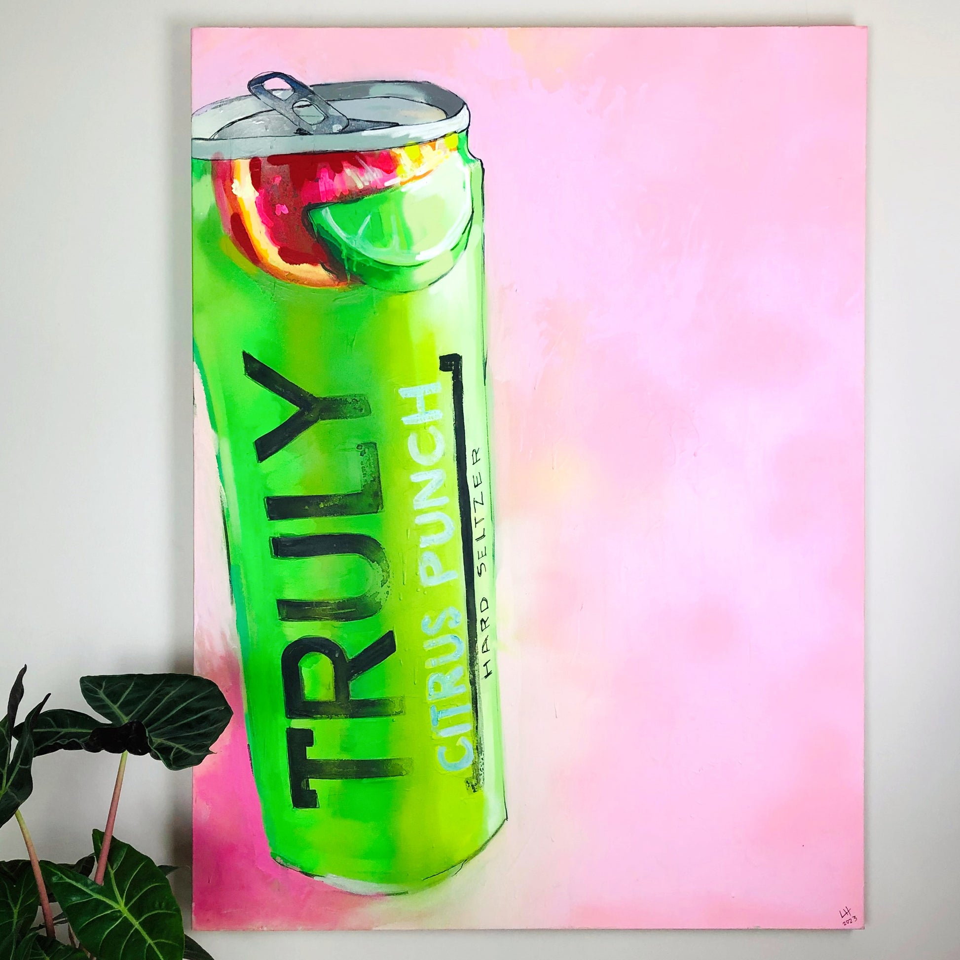 This artwork captures the lively energy of modern design, adding a pop of color and whimsy wherever it hangs. Whether you’re a fan of hard seltzers or simply love unique and bold art, "TRULY" is a one-of-a-kind piece that makes a fun statement.